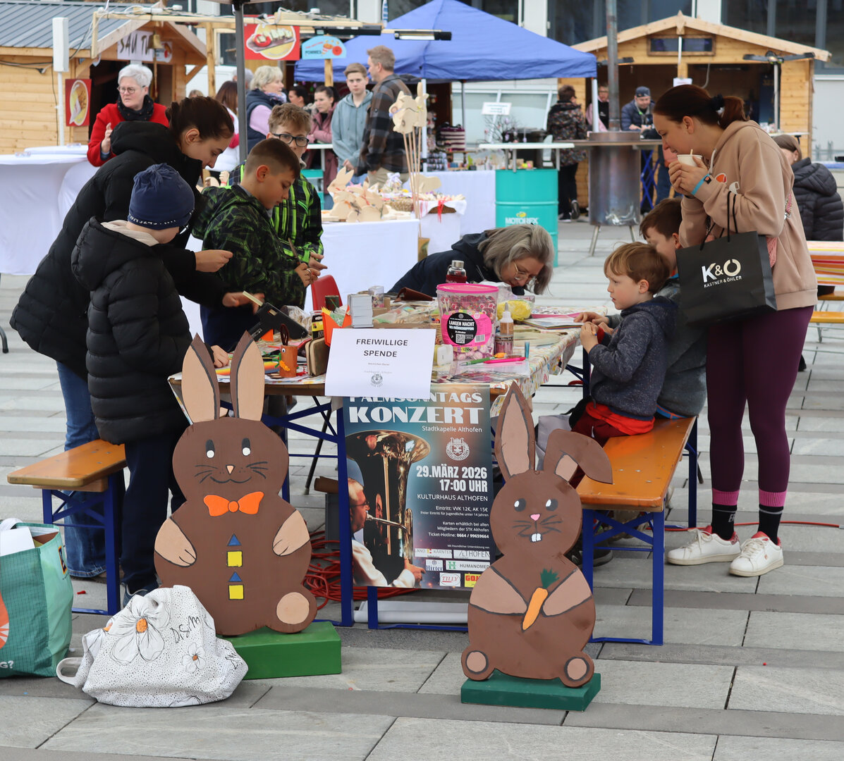 Am Samstag sorgten Kinderschminken- und basteln mit der Stadtkapelle Althofen für große Begeisterung. Unter der Betreuung von Jana Mitterdorfer und Gabi Taferner entstanden dabei zahlreiche kreative und farbenfrohe Kunstwerke. Ein weiteres Highlight war das gelungene Frühlingskonzert der Stadtkapelle Althofen unter Obmann Christian Taferner und Kapellmeister Armin Korak. Trotz durchwachsener Wetterbedingungen ließ sich die gute Stimmung nicht trüben: DJ Sigi sorgte mit viel Gespür für die richtigen Klänge und erfüllte zahlreiche Musikwünsche. Weiter geht’s am Freitag ab 15:00 Uhr – dann öffnet der Althofener Ostermarkt wieder seine Pforten.