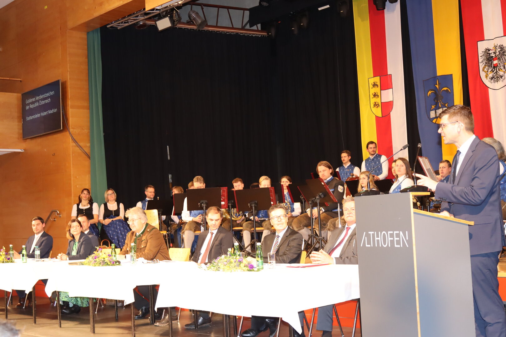 Im Kulturhaus Althofen fand vergangenen Donnerstag eine Ehrungsfeier als Zeichen des Dankes und der Anerkennung statt. Die Stadtgemeinde Althofen würdigte dabei 74 verdiente Bürgerinnen und Bürger. Stadtamtsleiter Hubert Madrian erhielt aus den Händen von Landeshauptmann-Stellvertreter Martin Gruber das Goldene Verdienstzeichen der Republik Österreich.