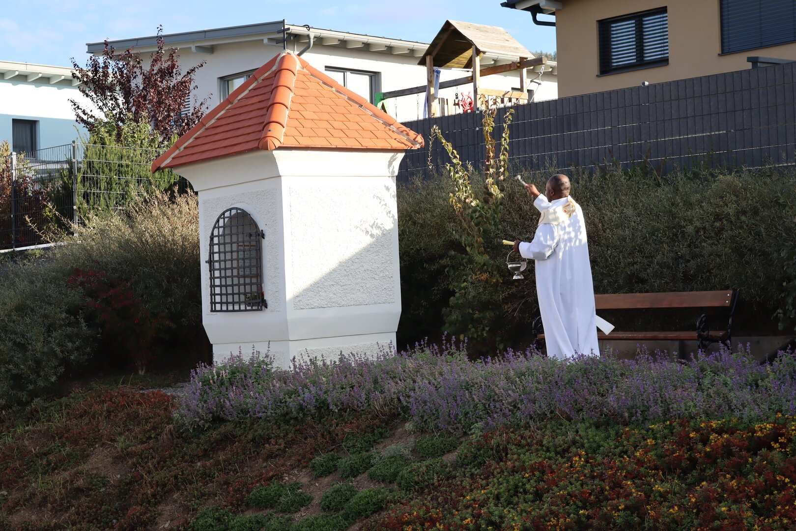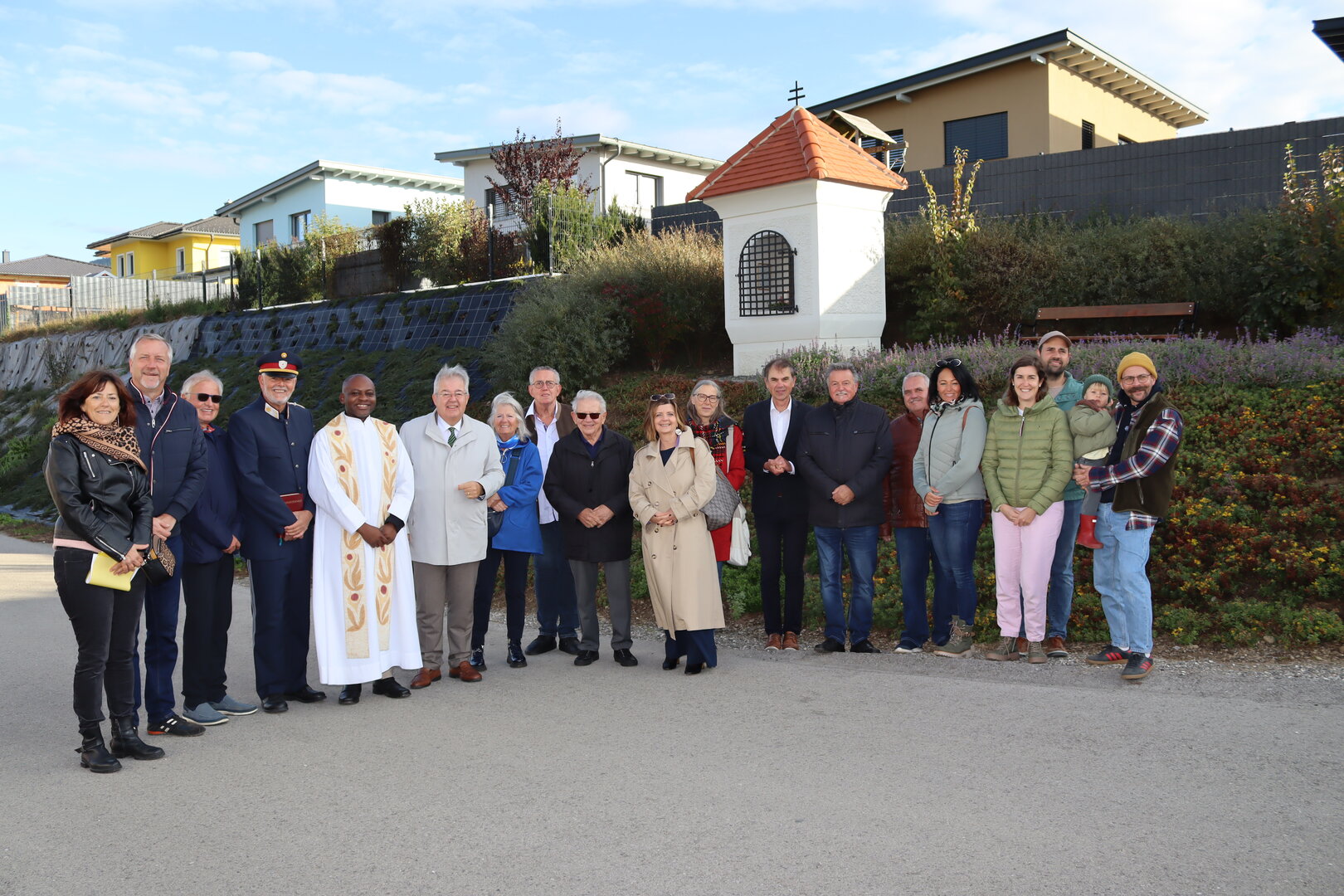 Die Weihe nahm Stadtpfarrer John Opara im Beisein von Nachbarinnen und Nachbarn vor. Auch Bürgermeister Walter Zemrosser, Vizebürgermeisterin Doris Hofstätter, Stadtrat Klaus Trampitsch, die Gemeinderäte Robert Dolzer und Silvia Zeißler, Stadtamtsleiter Hubert Madrian, die Alt-Bürgermeister Heinz Niedermessner und Alexander Benedikt, Susanne Egger, Direktorin der Mittelschule Althofen, sowie Sandra Benedikt, Leiterin der Kindertagesstätte „Frechdax“, wohnten der Feier bei.