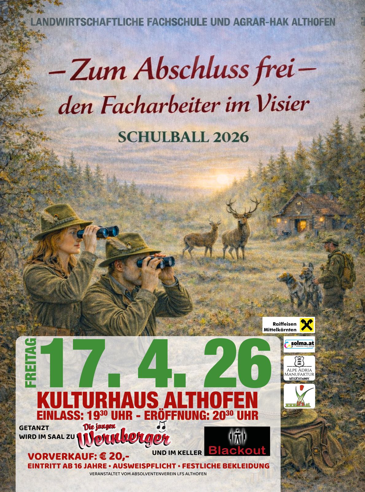 Am 17. April findet im Kulturhaus Althofen der Schulball der Landwirtschaftlichen Fachschule Althofen und Agrar-HAK Althofen statt.