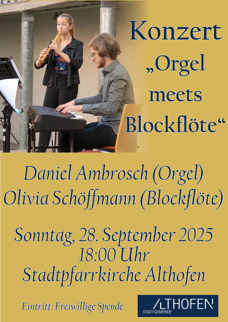 In der Stadtpfarrkirche Althofen findet ein besonders Konzert statt: Daniel Ambrosch an der Orgel und Olivia Schöffmann (Blockflöte) verzaubern ab 18:00 Uhr ihr Publikum. Der Eintritt ist frei.